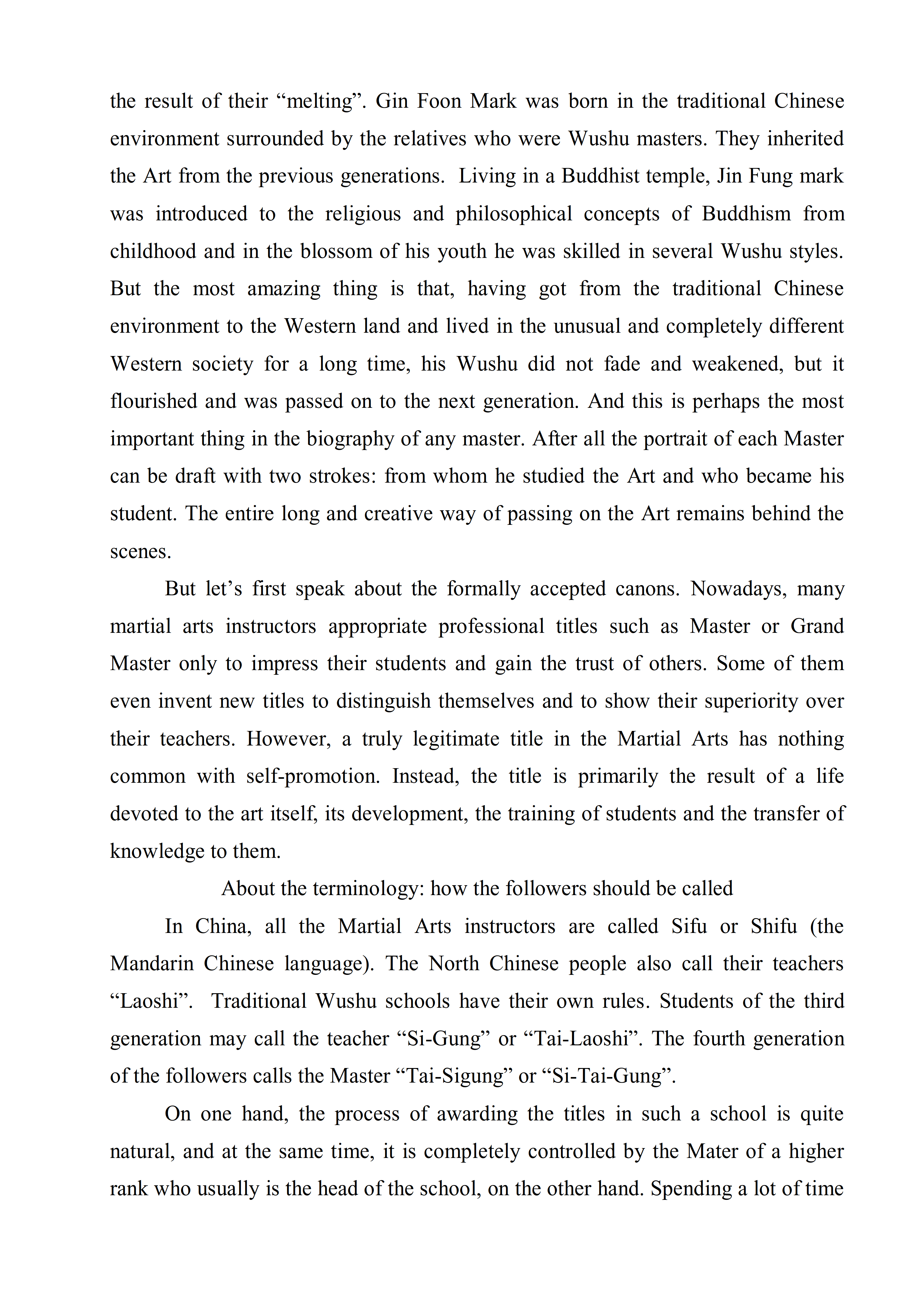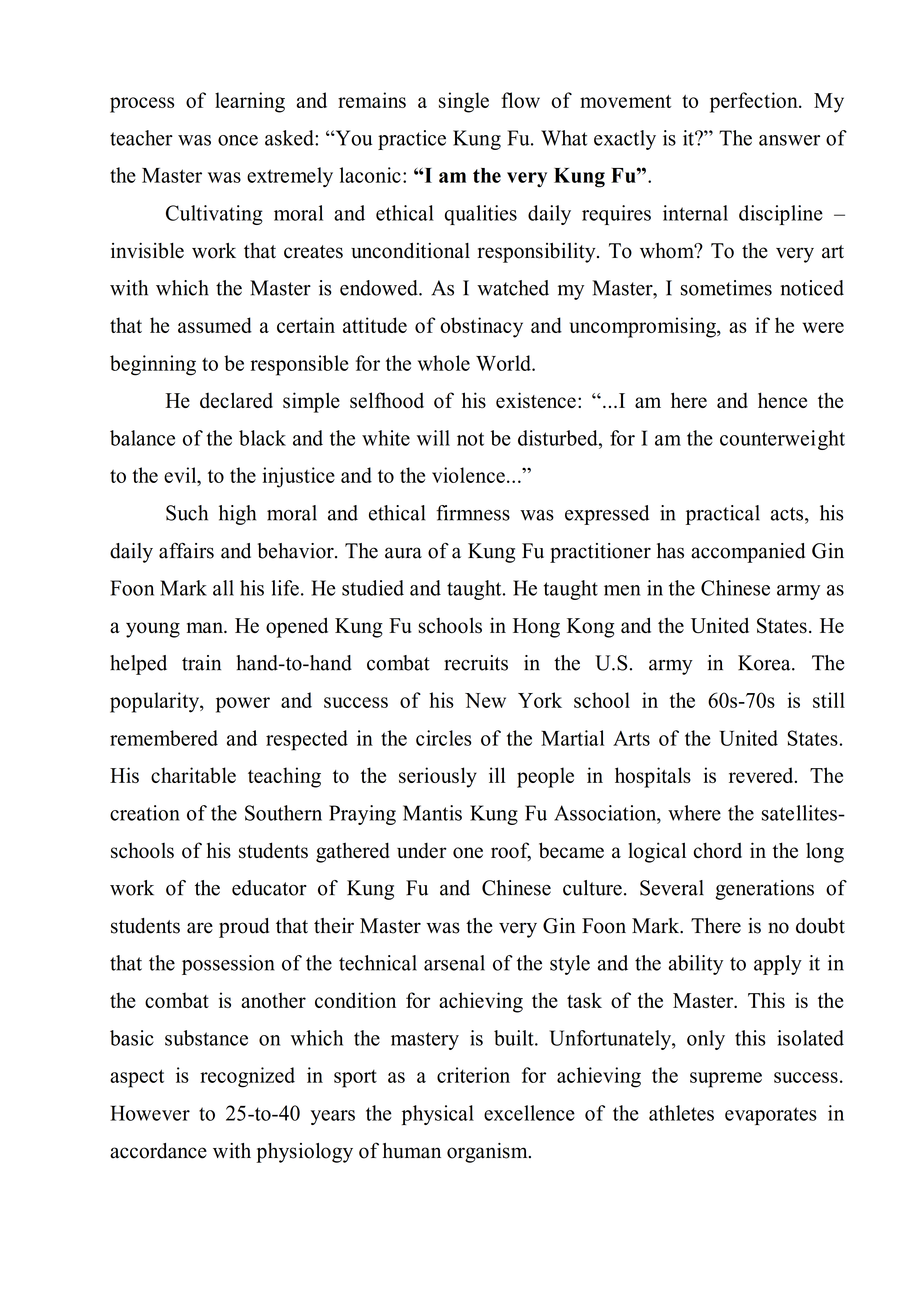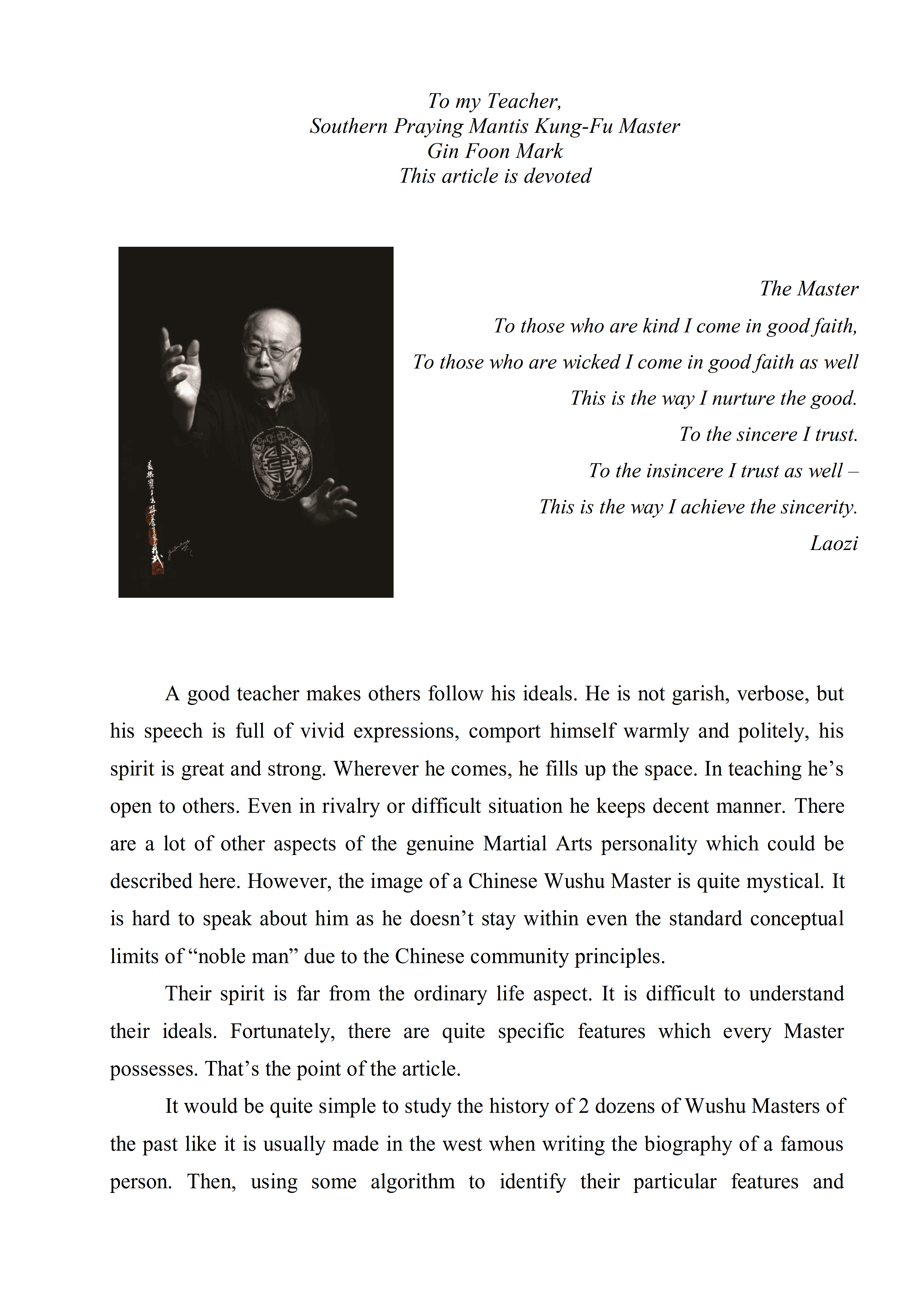 To my Teacher, Southern Praying Master King-Fu Master Gin Foon Mark